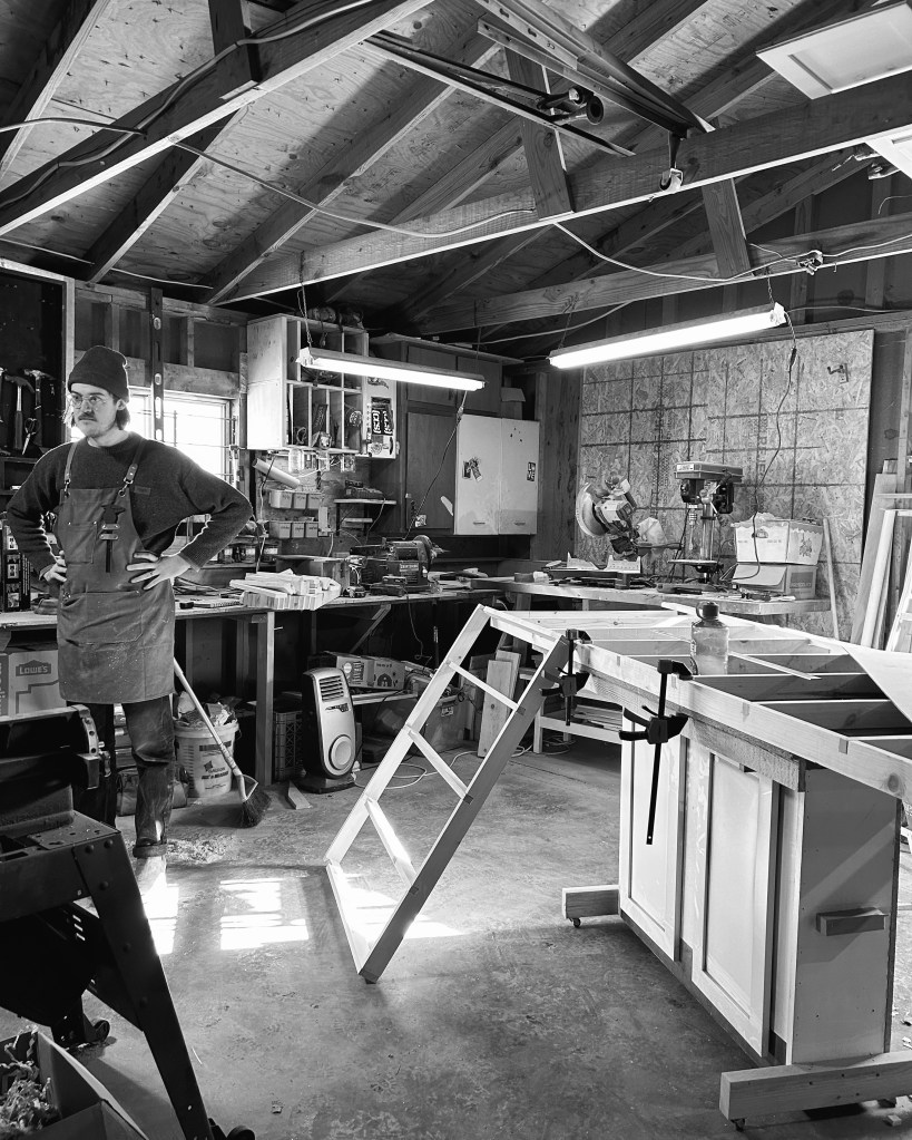 Garrett Langebartels is a multi-disciplinary painter, furniture maker and musician based in Indianapolis, IN. His work explores the boundaries of abstraction through acrylic on canvas and plywood. Rooted in the traditions of Abstract Expressionism, his paintings engage with color, geometry, and rhythm, drawing inspiration from the likes of Wassily Kandinsky, Josef Albers, and Agnes Martin. Similarly, his furniture works explore the natural rhythms of the raw materials. Nature expresses itself and his furniture pieces aim to honor that expression and flow. Each piece is made to be used, enjoyed, repaired and ultimately returned to the earth from which it came. He draws influence in furniture from the sensitivities of George Nakashima and James Krenov in that they blur the lines between furniture and sculpture.