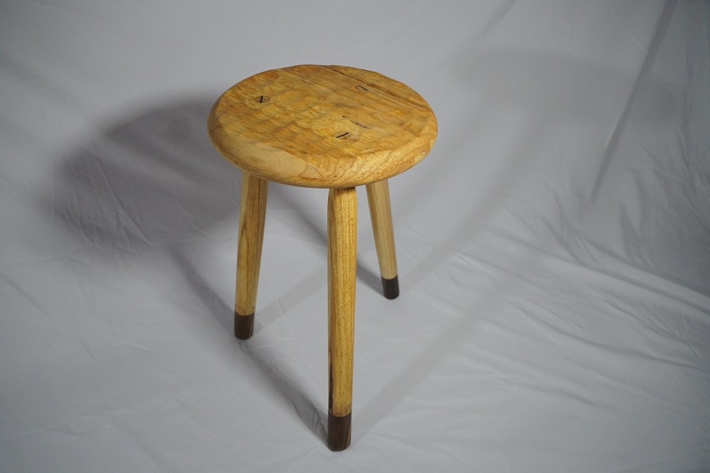 Ash “Stool #7” with walnut socks and ebony tenon wedges. 2025